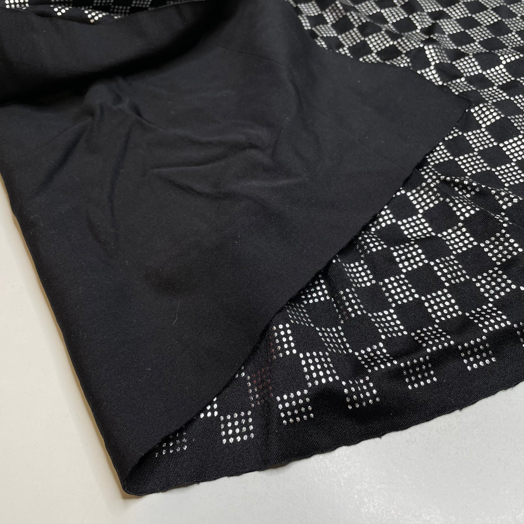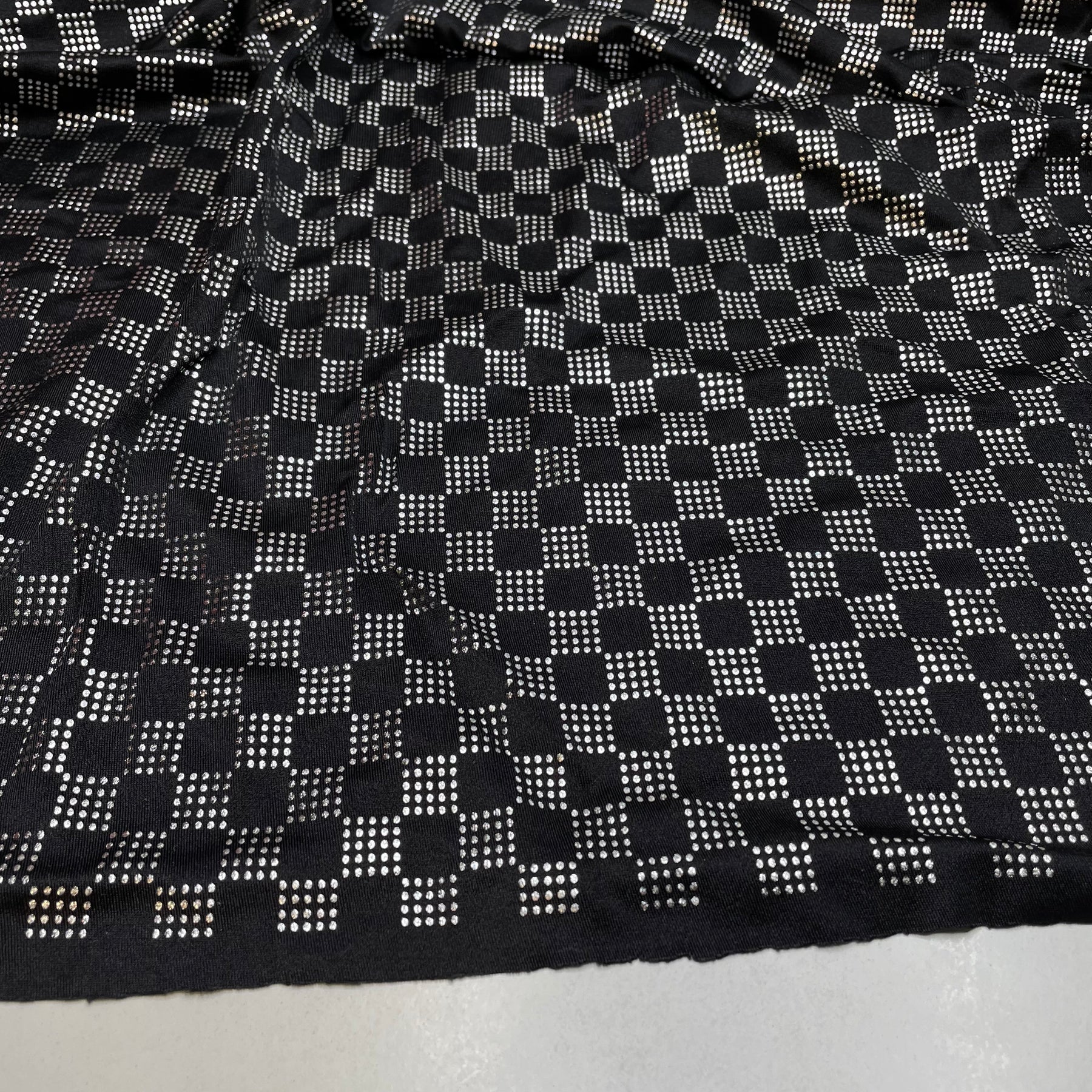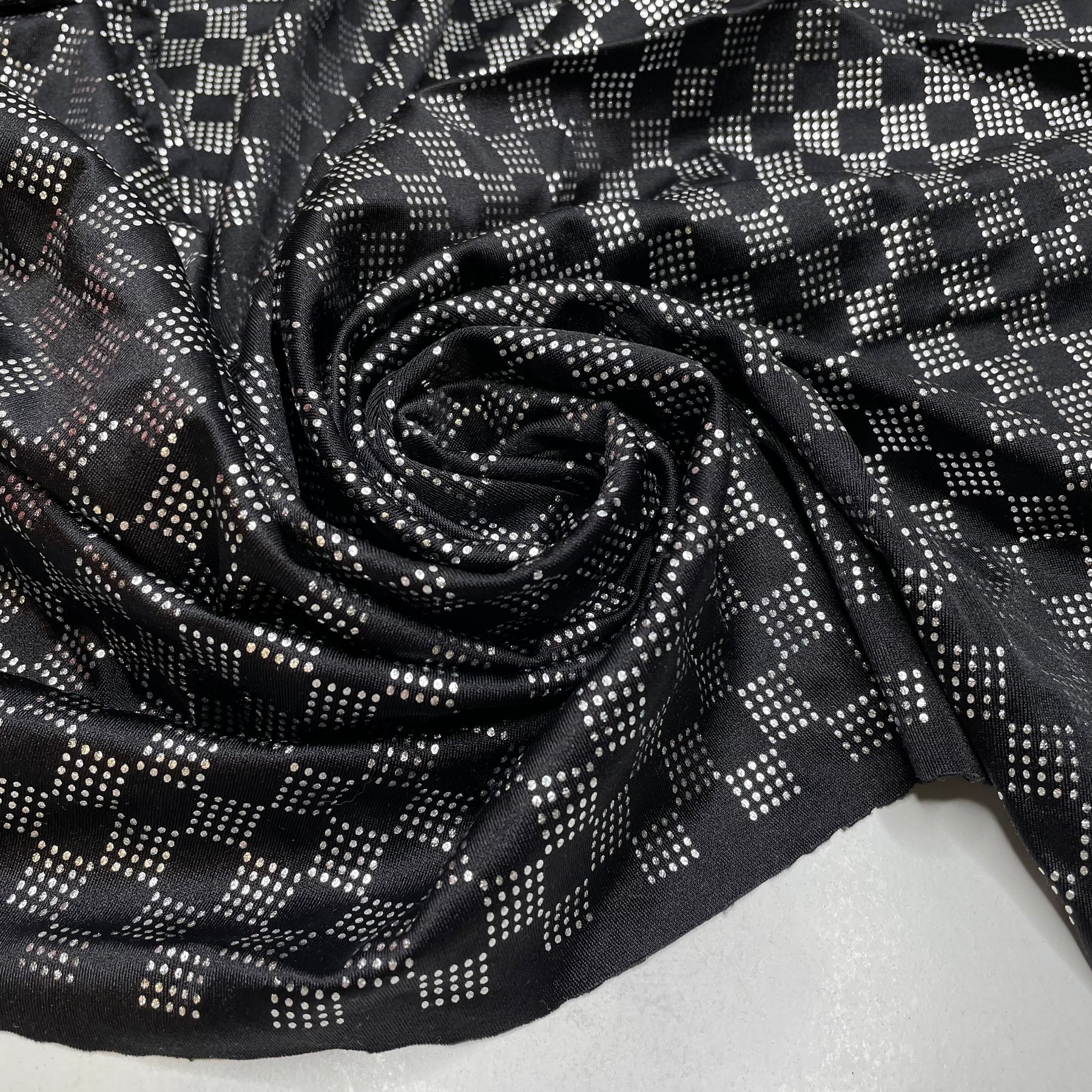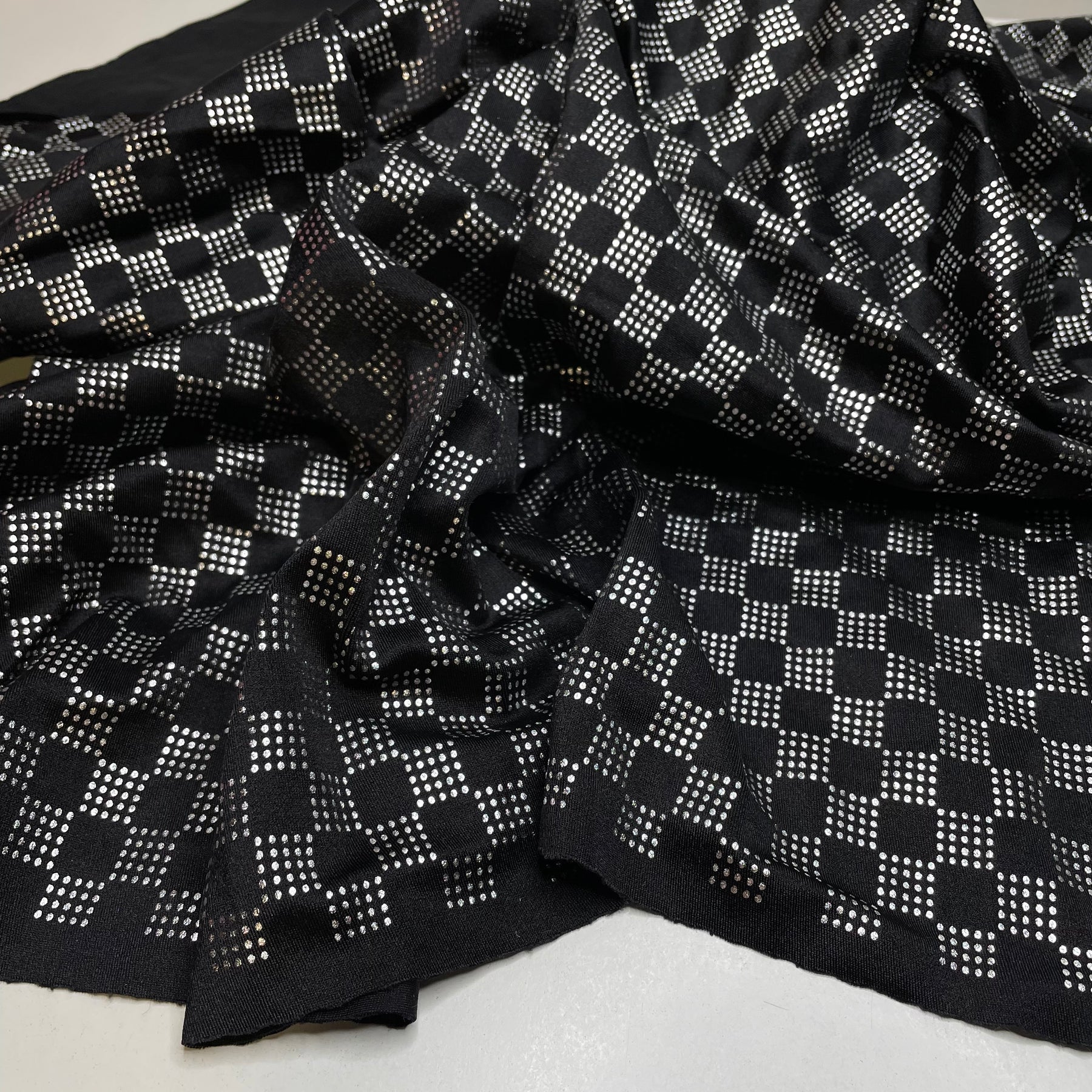 UB - Checkmate - Glitter Jersey Polyester Blend Knit - Black/Silver Geometric - 0.9M Bundle