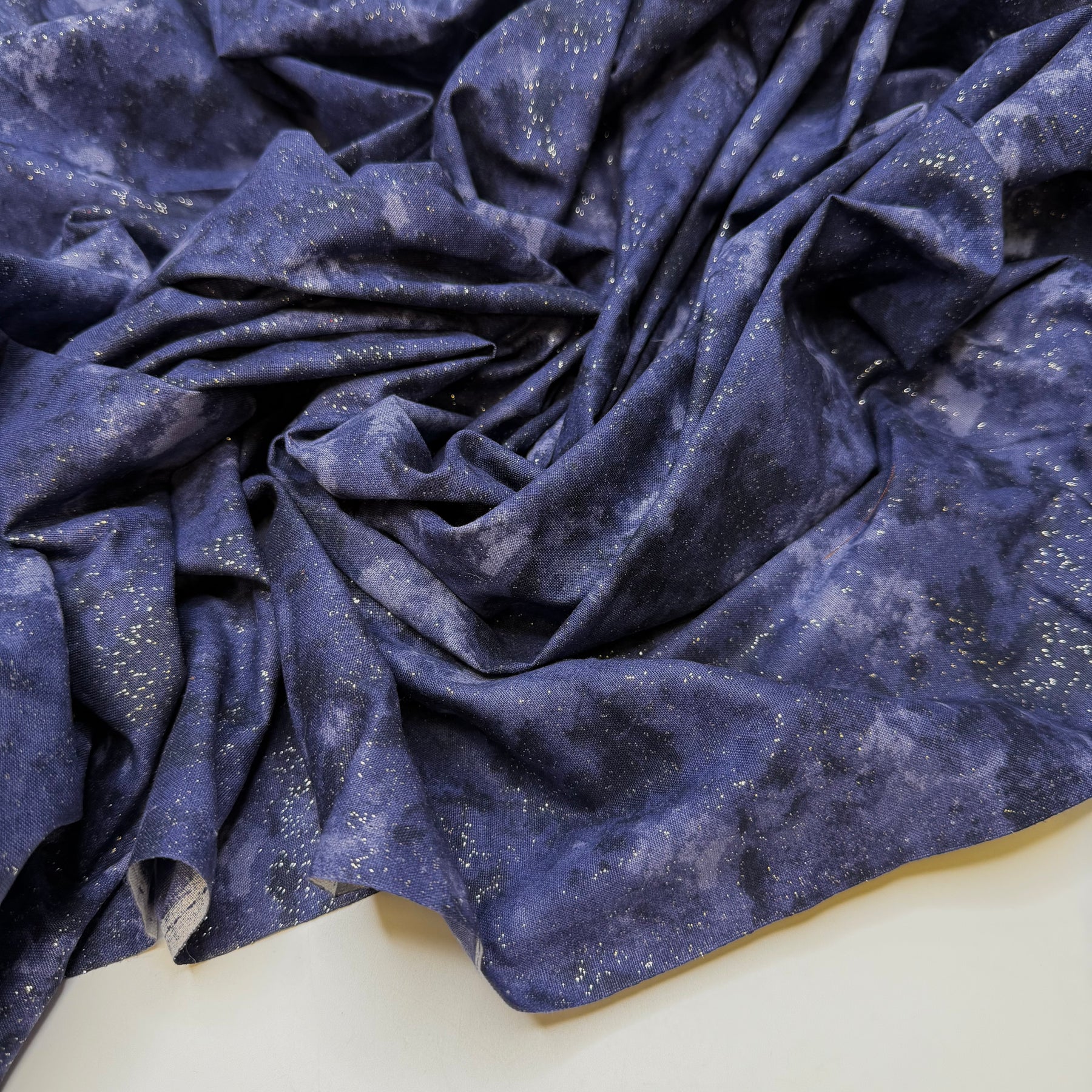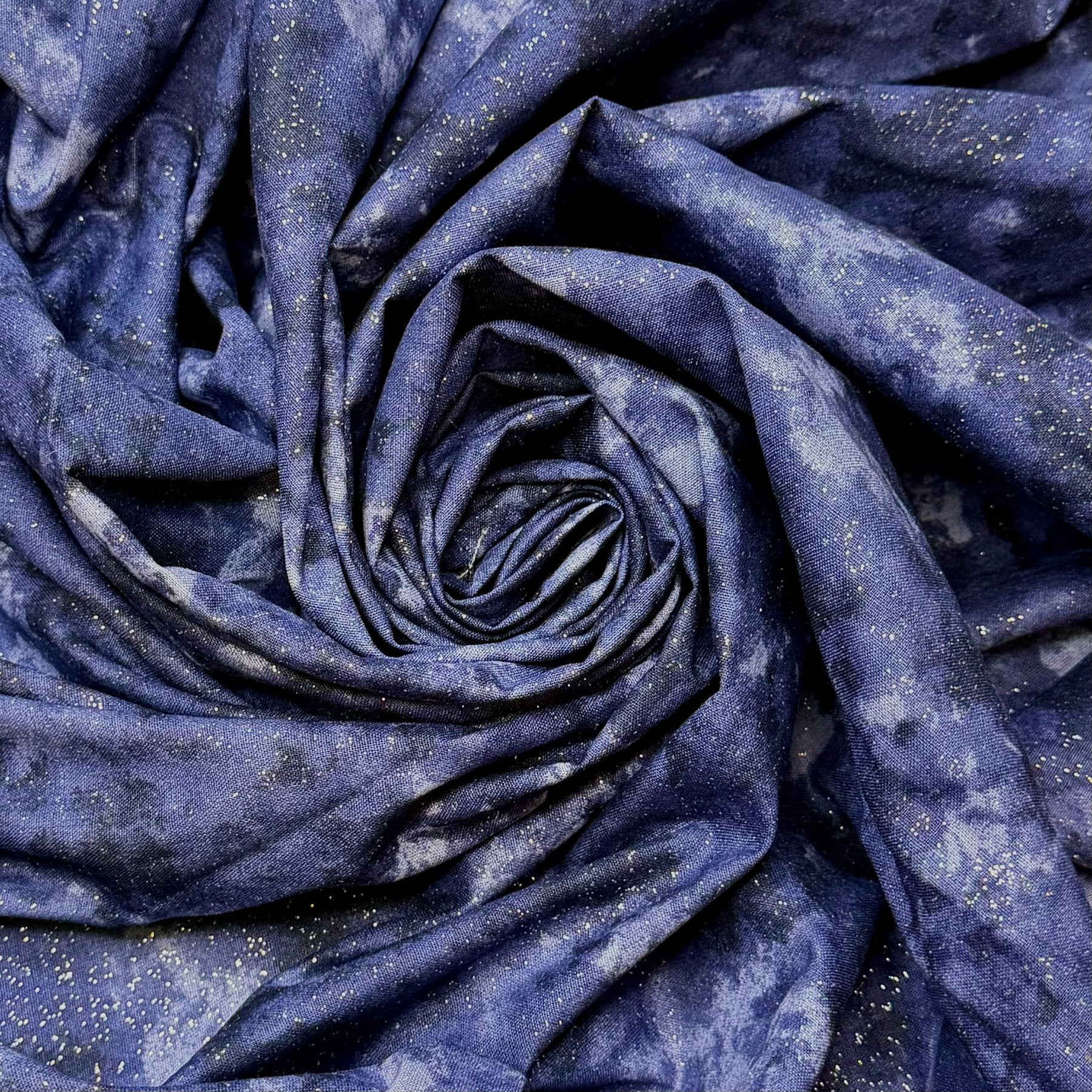 Wish Upon A Star - Glitter Cotton Woven - Navy/Silver Watercolour Abstract - Bundles